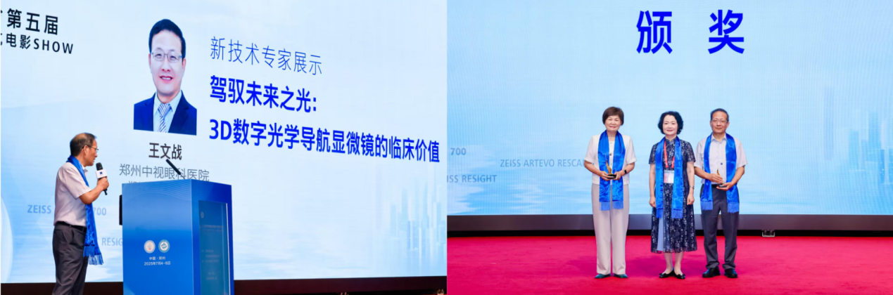 会议上,郑州中视眼科医院眼底病专家王文战教授作为新技术专家,分享的《驾驭未来之光:3D数字光学导航显微镜的临床价值》课题,成为会议的一大亮点,荣获大会“最佳新技术奖”。演讲中,王教授通过详实的真实手术案例,生动阐释了蔡司ARTEVO 800数字双导航3D手术显微镜在眼底病、复杂性白内障、青光眼等高风险、高精度手术中的划时代价值。他着重强调了该技术如何凭借其卓越的立体视觉、无延迟影像和高精度导航,在根本上提升手术的安全性、精准度和可预见性,从而为患者带来显著的视觉质量改善和生活质量飞跃。