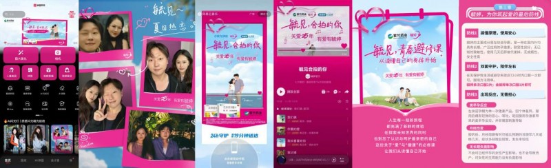 六月,在美图秀秀发起的“毓见,夏日热恋”活动,通过专属拼图配方激发用户分享热情,奠定情感基调;七夕节点,“毓见,合拍的你”在美图秀秀与网易云音乐同步展开,借力“合拍海报”与“合拍歌单”,将抽象的情感默契转化为可感知、可传播的互动体验;九月开学季则进驻超级课程表平台,推出“毓见,青春避修课”,与学生群体实现健康知识的场景化沟通。