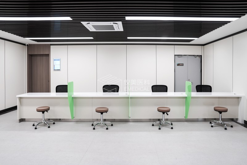 仪美医科重视隐私保护,精心规划采血位间隔,保证空间合理利用,为患者提供相对独立空间。绿色隔板实用清新,有效阻挡视线,独立采血单元如安全堡垒,让患者安心配合采血,守护其隐私与尊严。