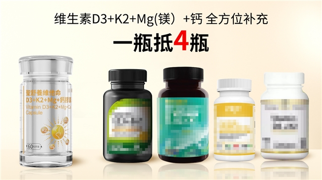 圣舒养维他命定位于为中老年、骨密度低、肝脏代谢弱、免疫疲惫人群,以及更年期、备孕群体提供科学、协同、吸收高效的复合型“D3+K2+柠檬酸钙+甘氨酸镁”黄金配方。区别市面单一D3或钙片,通过协同机制精确引导钙进入骨骼,不累及血管,大幅降低骨折风险和免疫力低下顽症,真正实现骨与免疫双修。