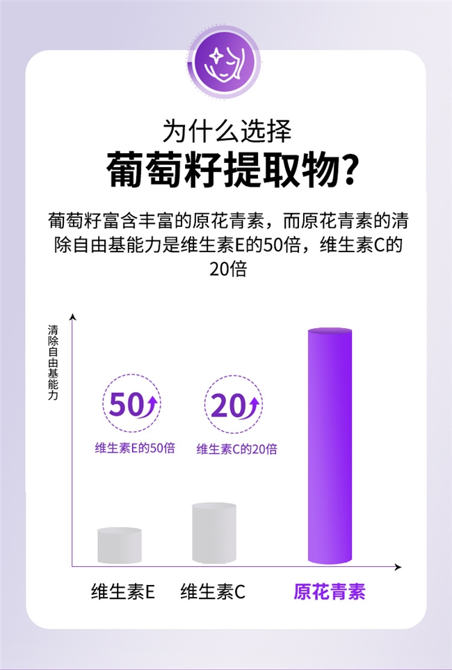 真正的内调养护,从来不是堆砌成分,而是让每一份营养都温柔发力。SSV葡萄把“纯粹”与“精准”藏进每一粒胶囊:配方干净得让人安心,仅甄选优质葡萄籽精粹与白果仁粉末两大天然原料,没有多余的防腐剂、合成添加剂,就像给身体的一杯清润花茶,敏感肌、肠胃脆弱的姐妹,或是想长期内调的人群,都能毫无负担地接纳这份温柔。