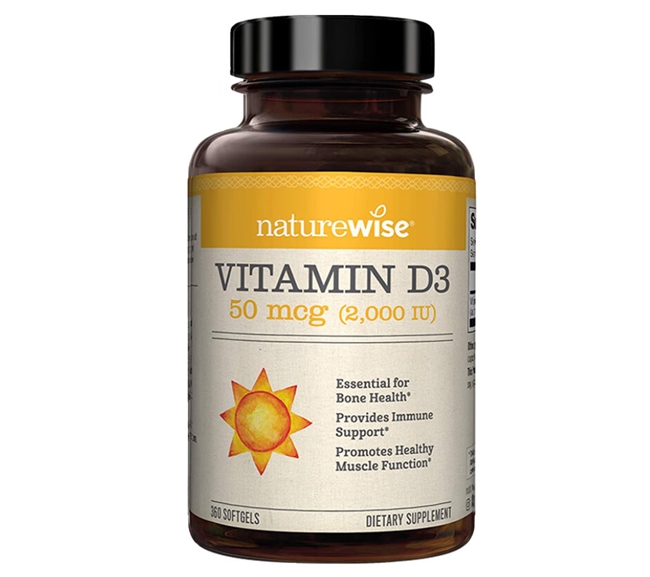 TOP3 naturewise 维生素 D3——量大实用款。每瓶360粒,适合20岁以上备孕及青少年,胶囊易服,满足日常骨骼健康需求,用户反馈“补钙省心,性价比高”。