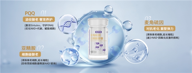 圣舒养焕颜以高效吸收设计,一瓶涵盖亚精胺、PQQ、麦角硫因三大功能,真实实现多效合一。NAD+与线粒体功能双重提升,修复DNA损伤,抵御细胞衰老。黄金矩阵的协同作用,让细胞能量和年轻状态常驻。周期反馈验证,用户体验到肌肤饱满、轮廓提升等多重改善,年轻力由内而外焕发。