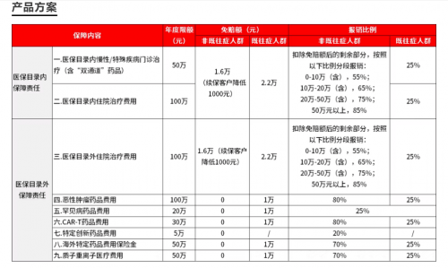 从产品方案表中可以看出,仑卡奈单抗是作为第七类——特定创新药品费用进行报销的,年度限额是5万元,对于非既往症人群,没有免赔额,报销比例在20%,但要注意既往症人群是不在报销范围之内的,同时“医保目录外住院治疗费用”也是不纳入《2026年度“赣惠保”特定创新药品目录》中列明药品的对应费用。