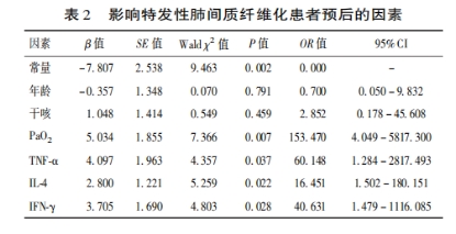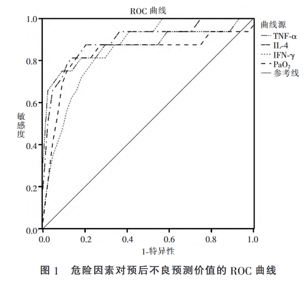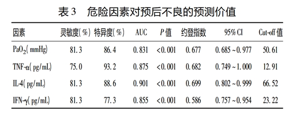 多因素排除混杂因素后PaO2、TNF-α、IL-4、IFN-γ指标为预后不良的危险因素( P<0.05) 。