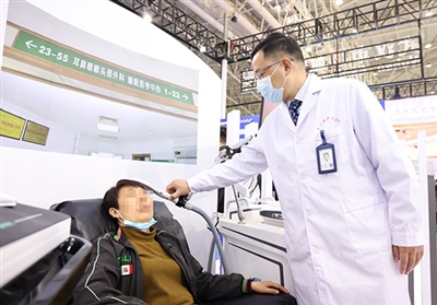 在武汉市中心医院设置的睡眠治疗互动体验区,您可以沉浸式体验集评估、诊断、治疗于一体的一站式睡眠健康管理。据介绍,该睡眠医学中心体验区设有便携式、可穿戴等各类智能化睡眠监测诊断设备,以及失眠治疗仪、磁场刺激睡眠治疗仪、无创呼吸机等治疗仪器,前来观展的观众躺在一张沙发椅上,医生在他手掌处贴上一个硬币大小的“睡眠豆豆”,可将睡眠、脉率、血氧饱和度等相关数据实时记录到仪器中,通过后台数据分析,及时发现睡眠健康问题。