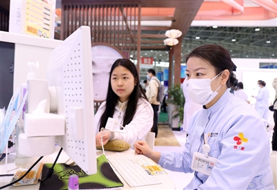 在武汉市第一医院(武汉市中西医结合医院)展位,吸引了不少观展者驻足围观。现场不仅搬来了中医四诊仪、三维眼前节分析系统、一体化智慧服务平台等科技感十足的仪器设备,让现场观展者沉浸式感受智慧医疗“黑科技”成果,还有耳穴、刮痧、推拿等中医适宜技术供观者现场体验。