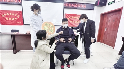 现场两位准爸爸踊跃体验分娩阵痛。第一位体验者李超坚持了三分钟,分享自己的感受:“痛到受不了,无法形容的痛。”他所体验的分娩镇痛最终停留下8级。第二位体验者梁锋希望能通过这次活动安抚妻子的孕后紧张情绪,他一边喊着“痛”,一边“加码”到10级,最后“疼麻了”。