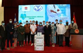 任义生、利卫生部长贾拉、国防部长赞坎、不管部部长普伊,利相关政府部门代表,驻利使馆经商参赞李江、中国援利医疗队…