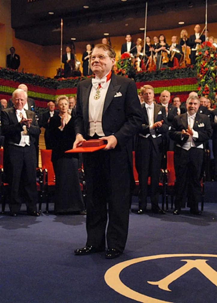 图5  2008年12月10日蒙塔尼在斯德哥尔摩音乐厅获诺贝尔奖后 | 图源:nobelprize.org
