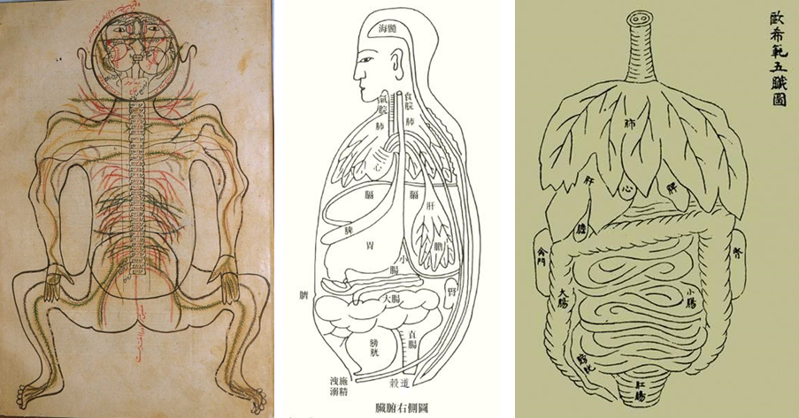 左:作者为中世纪波斯人;中:宋代《存真图》;右:宋代《欧希范五脏图》