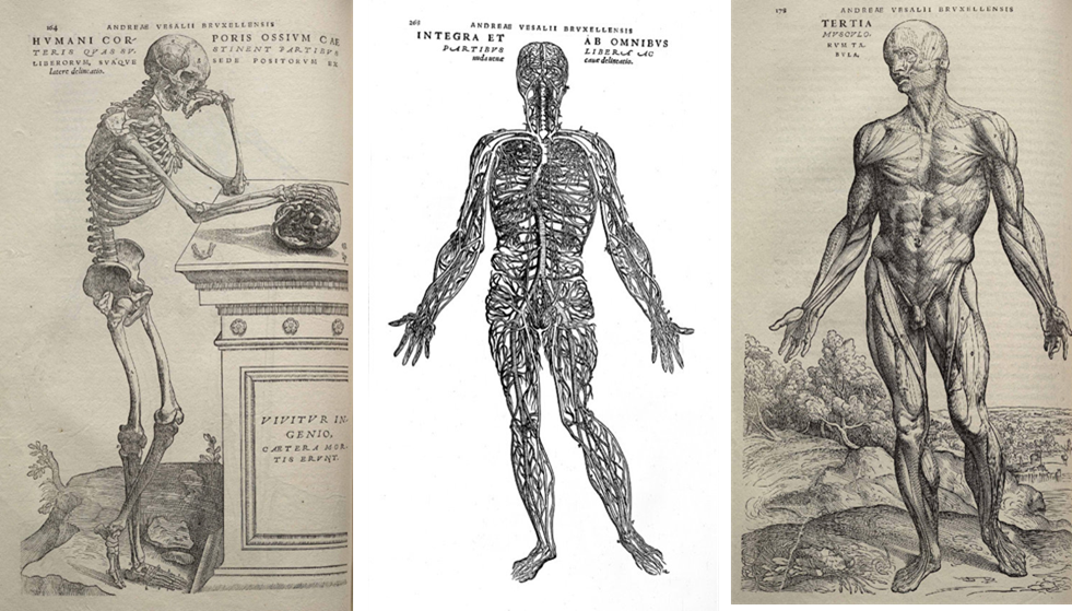 图2 现代解剖学之父维萨里《人体的构造》中的部分解剖图(图片来自维基百科)